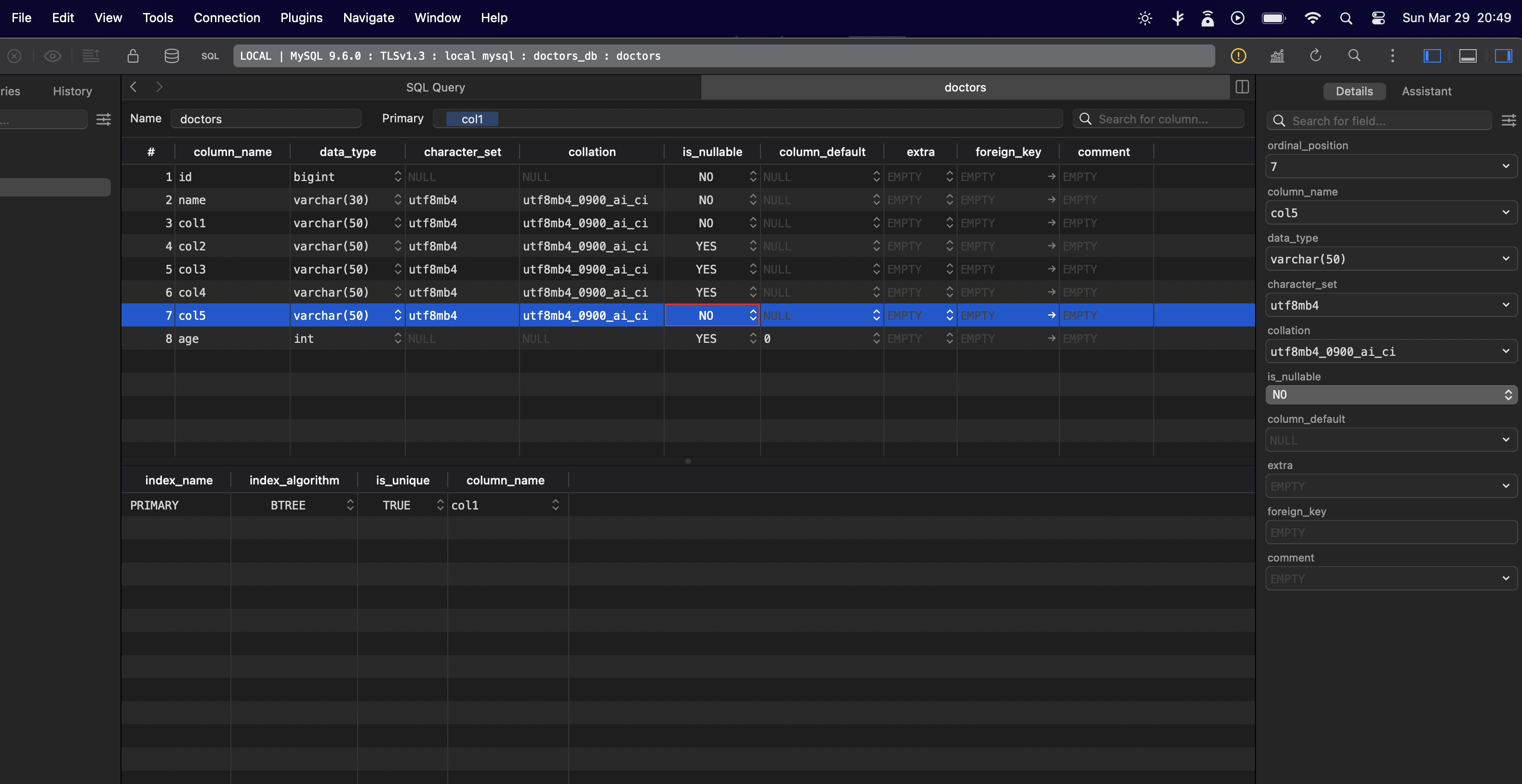 ALTER TABLE doctors ADD PRIMARY KEY (col1);- took 25s on 7.5m rows table