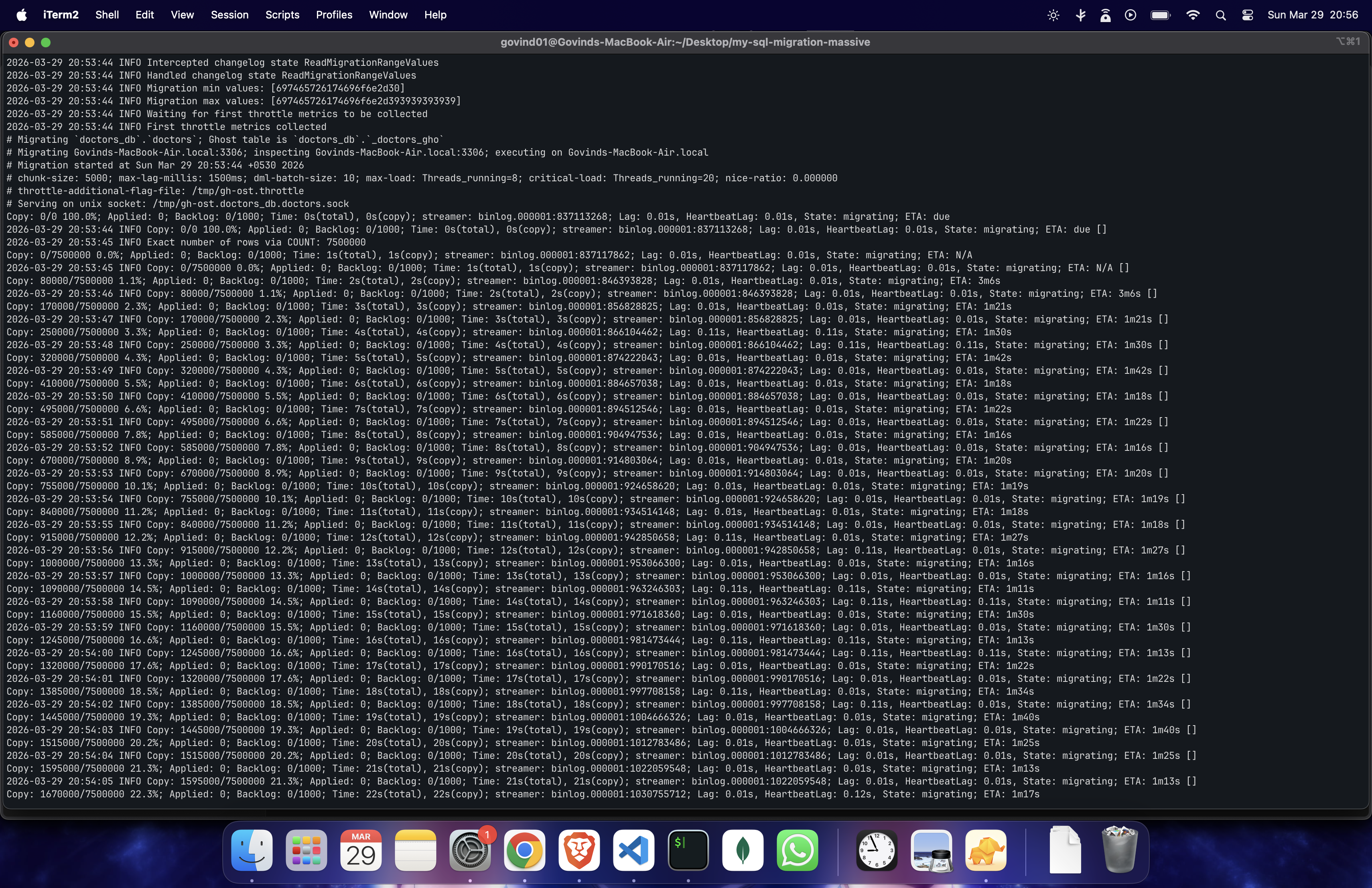 - best part — bin log files upon reaching a specific size, mysql internally rotates it. ghost handles that too. have a log for this when i ran it on 7.5mil rows