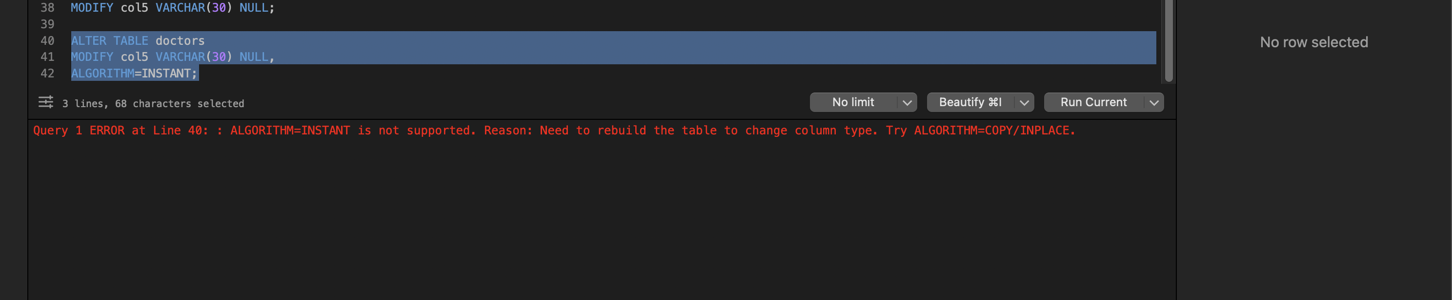- Changing a column type → INPLACE may rewrite just that column, not the entire row.